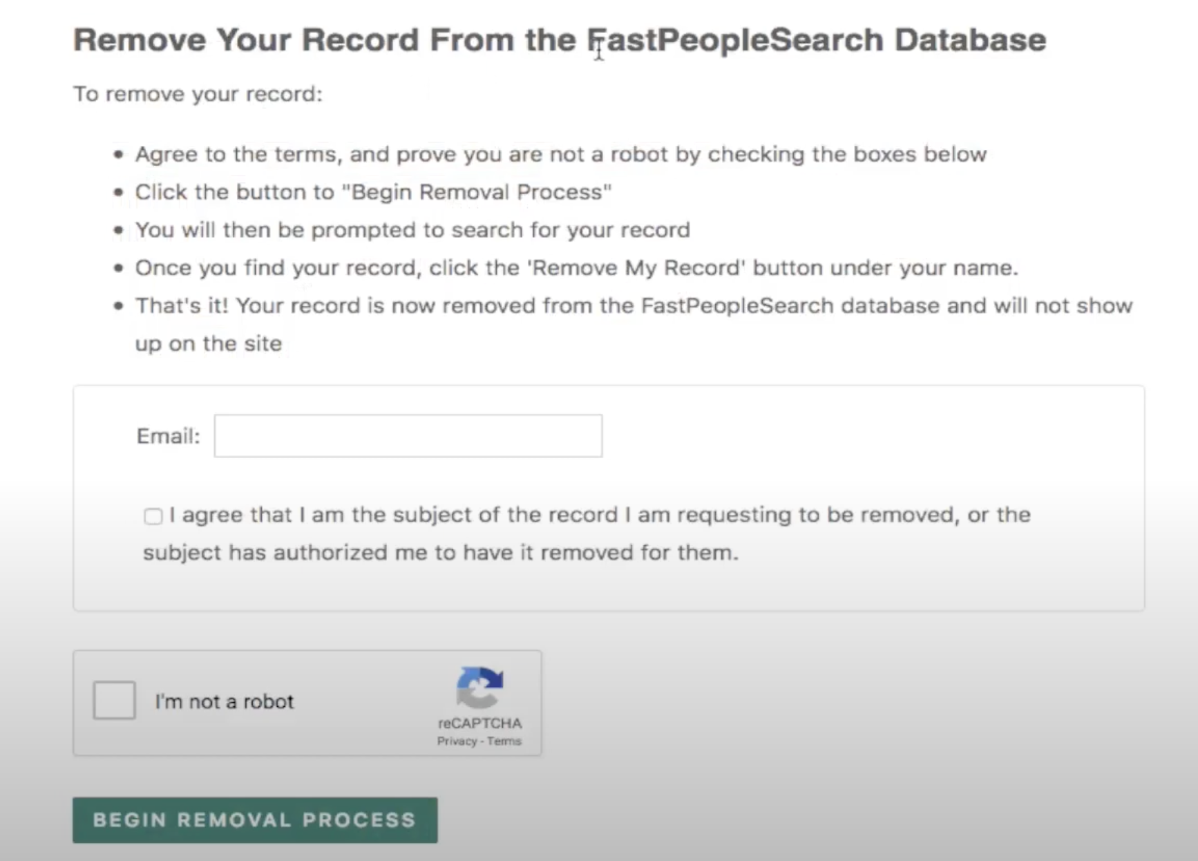 FastPeopleSearch Removal Requirements
