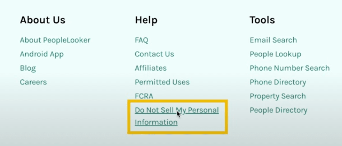 1. Visit peoplelooker.com, scroll to the footer, and click “Do Not Sell My Personal Information.”
