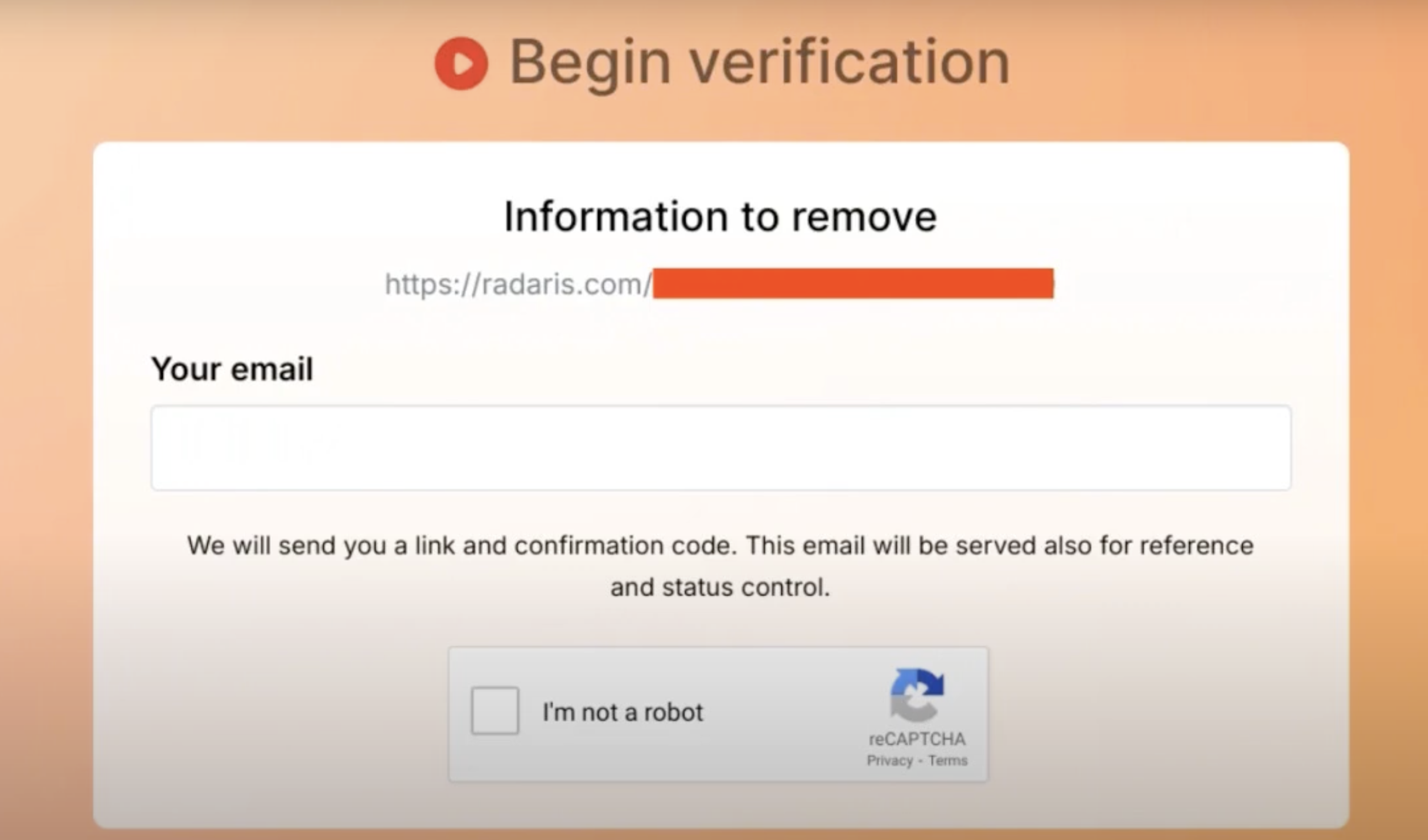 The most reliable way to remove your information is through the Radaris Privacy Portal. Here’s how you can do it: